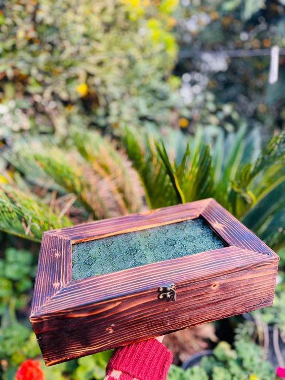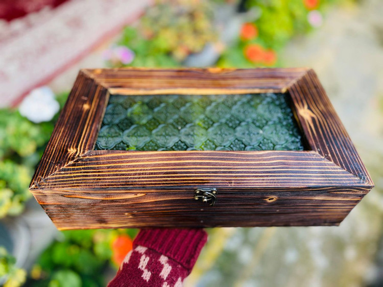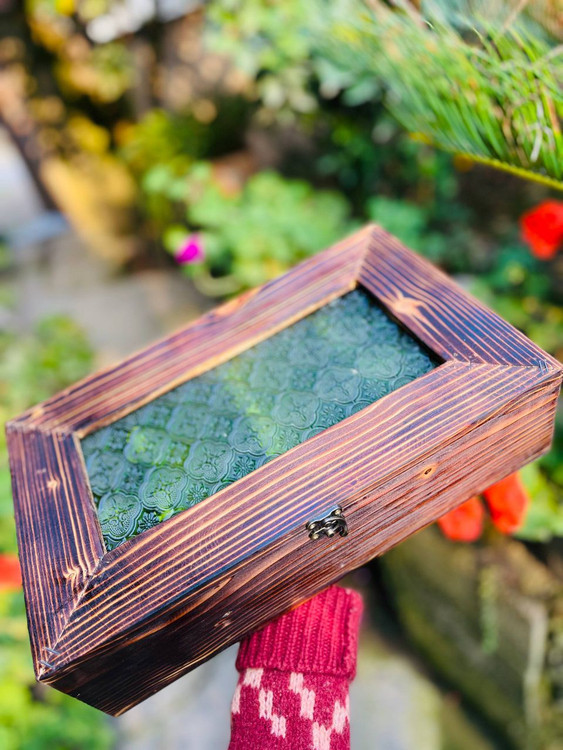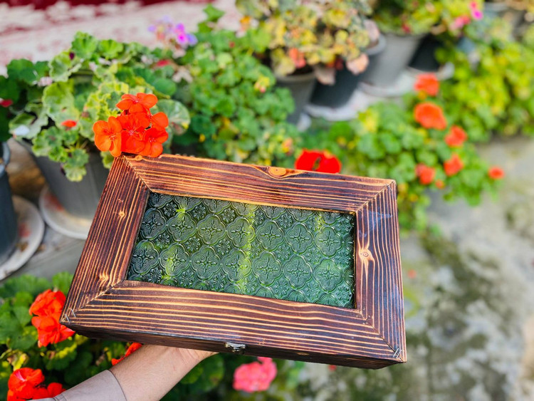 باکس پذیرایی مستطیل شیشه گلدار سبز قدیمی