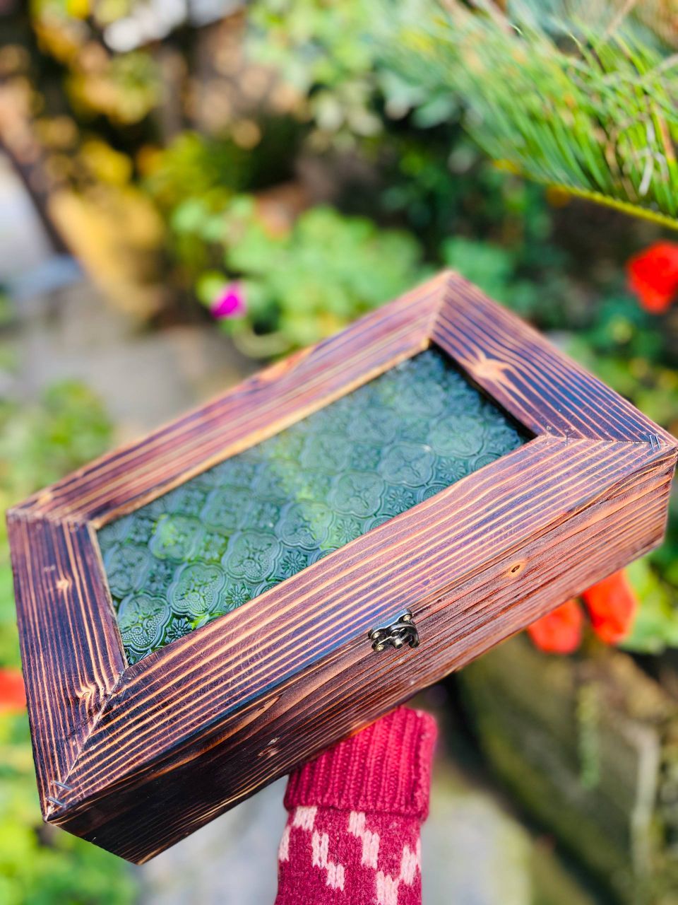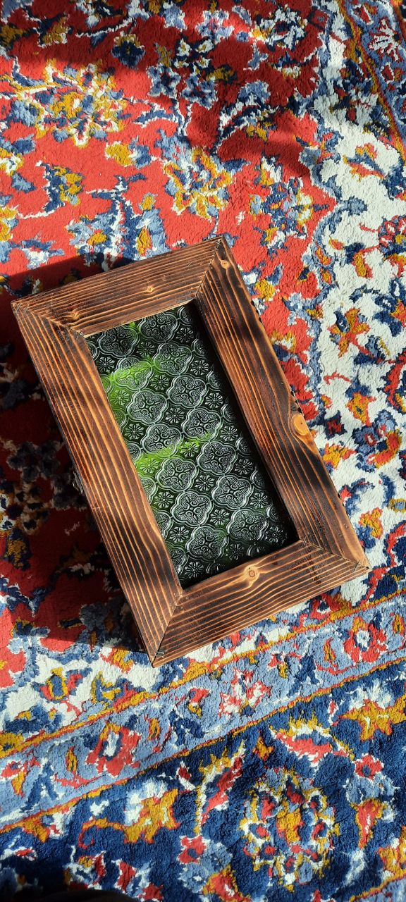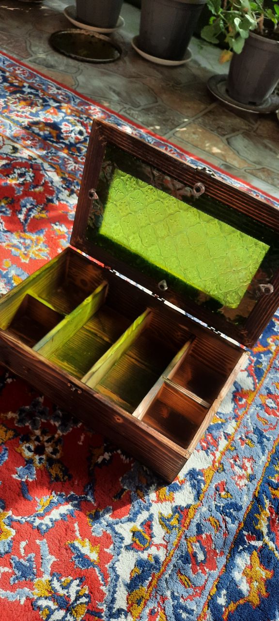 باکس پذیرایی مستطیل شیشه گلدار سبز قدیمی